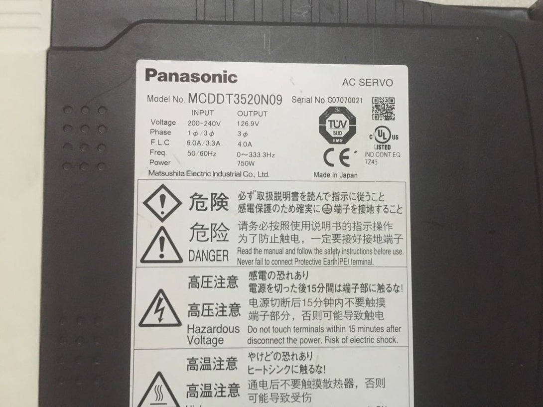 1PC USED PANASONIC AC SERVO DRIVER MCDDT3520N09 FREE EXPEDITED SHIPPING